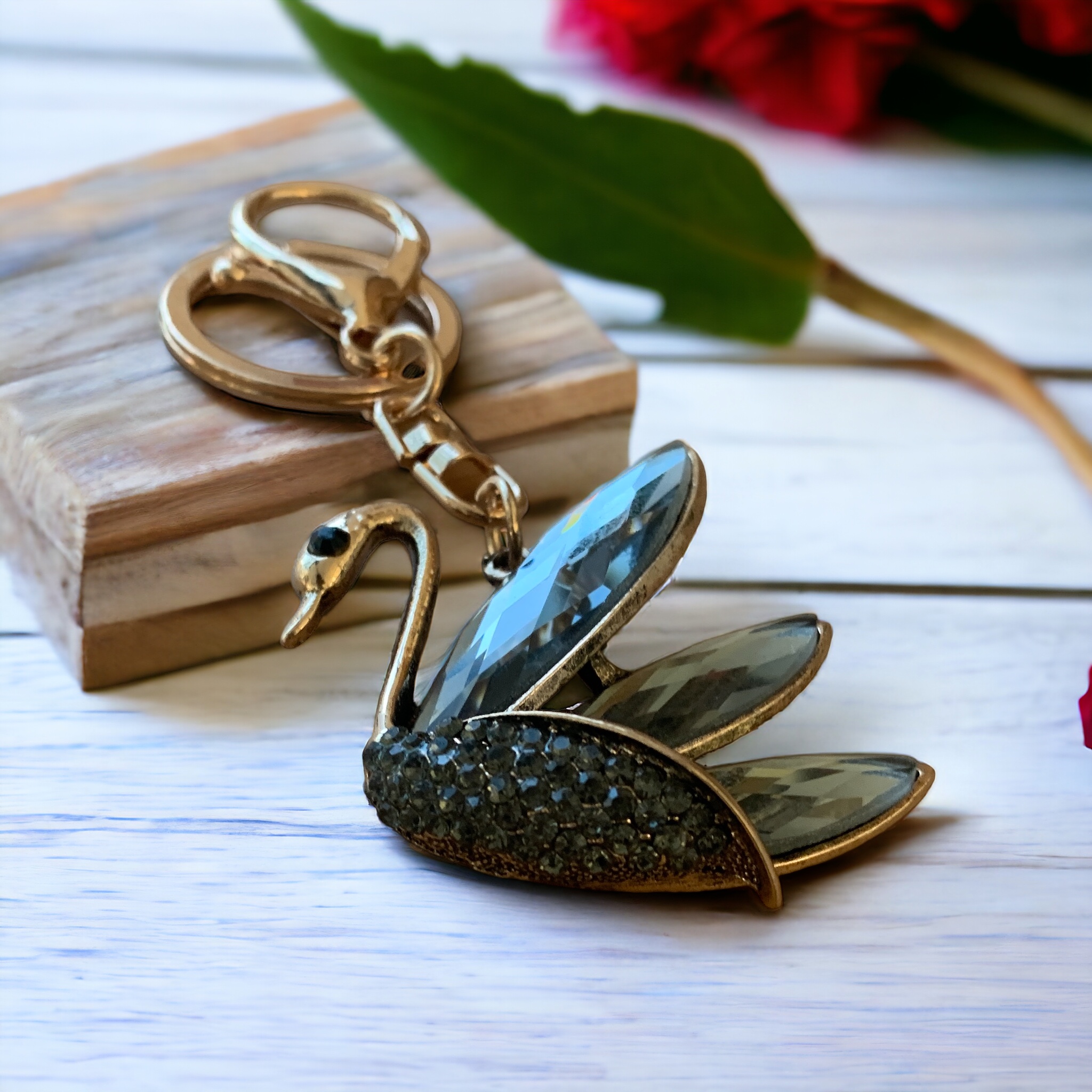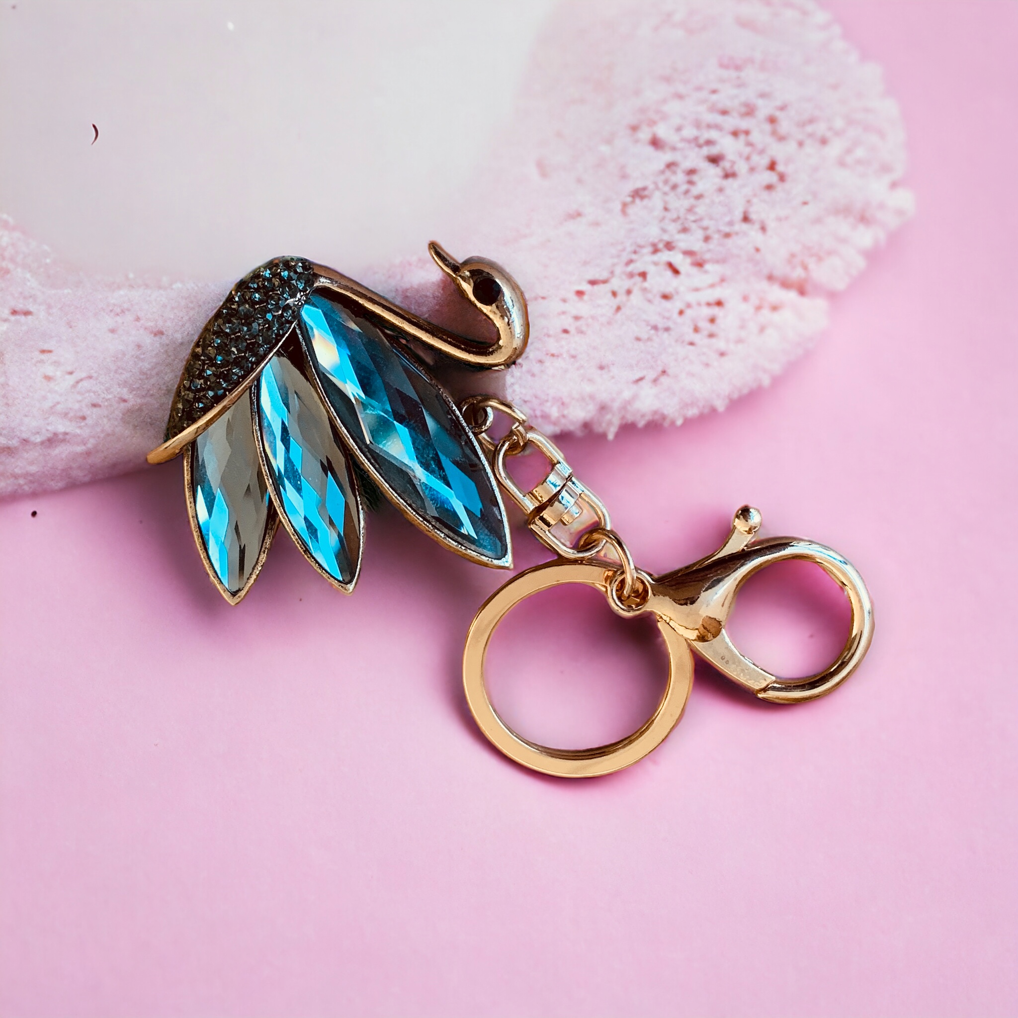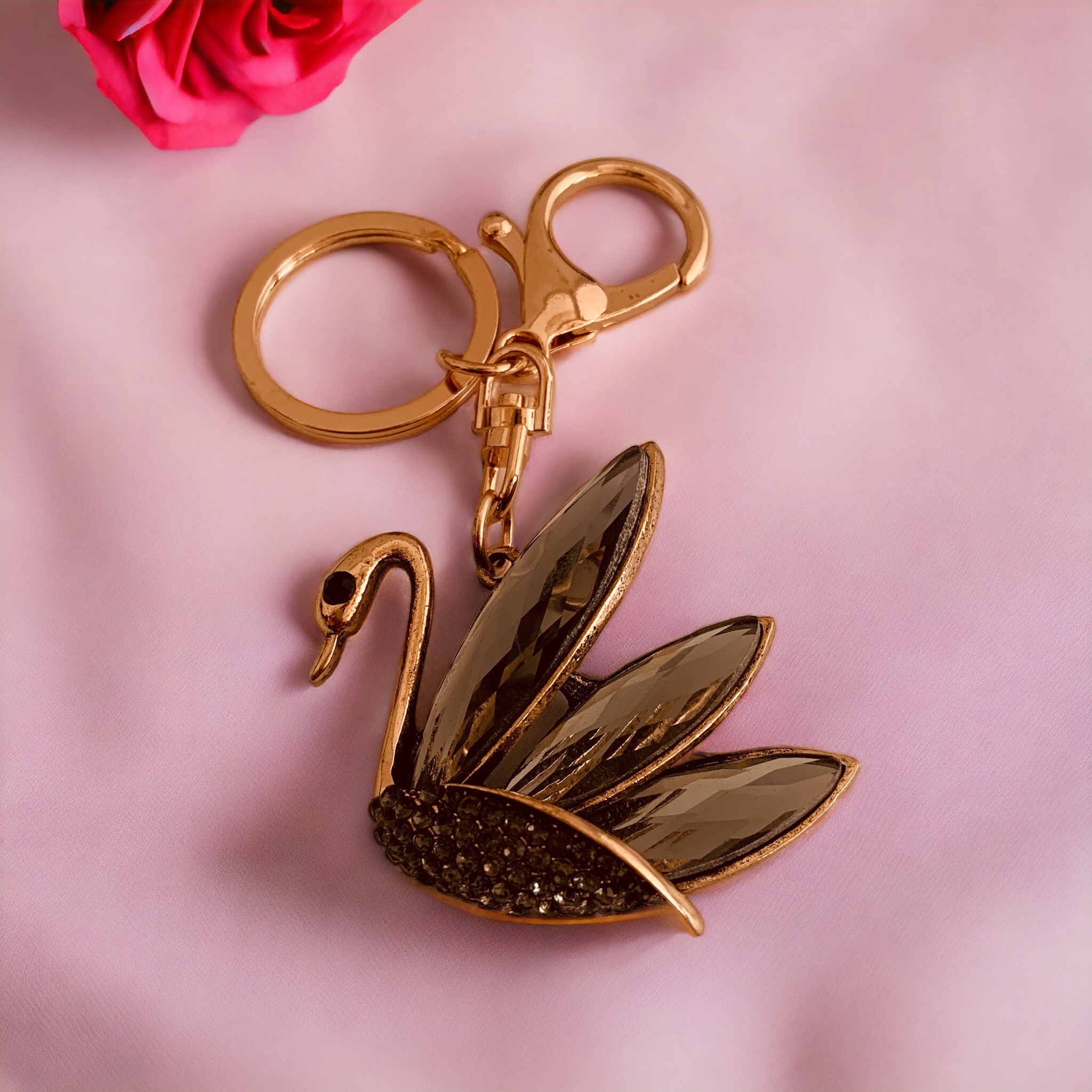 Ключодържател ‘Розовозлатен Лебед’ с Кристални Акценти ,  Онлайн магазин за ключодържатели