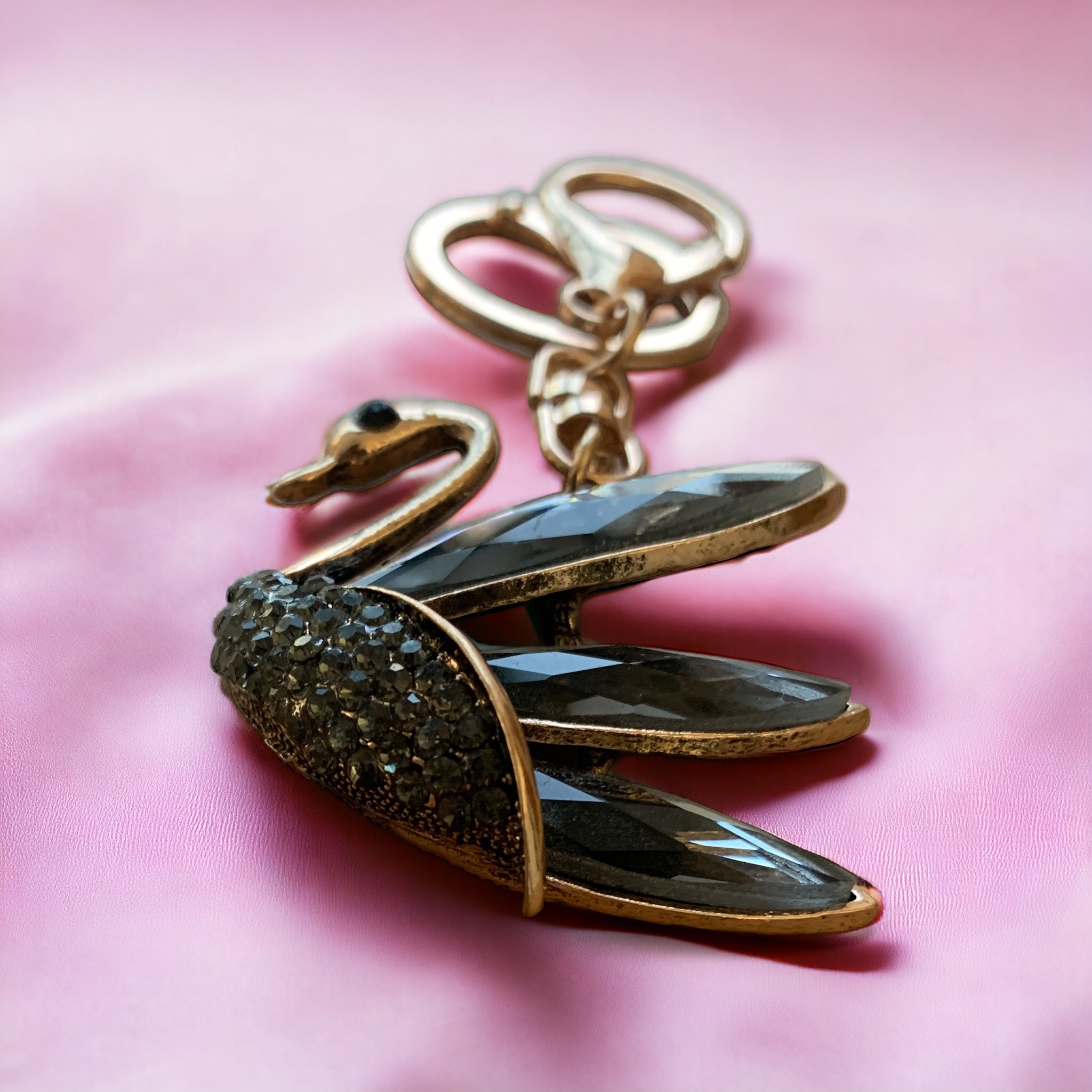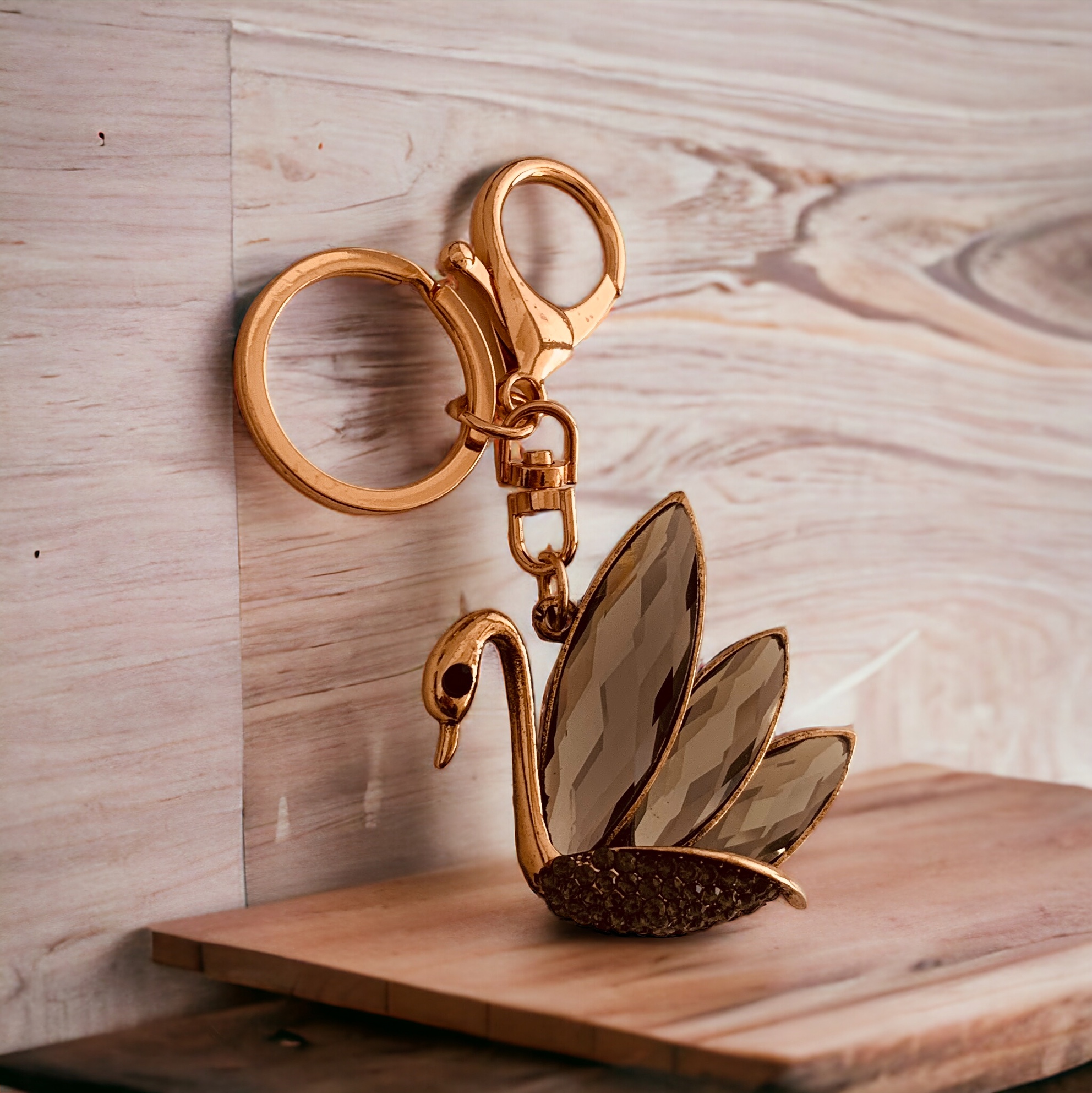 Ключодържател ‘Розовозлатен Лебед’ с Кристални Акценти
